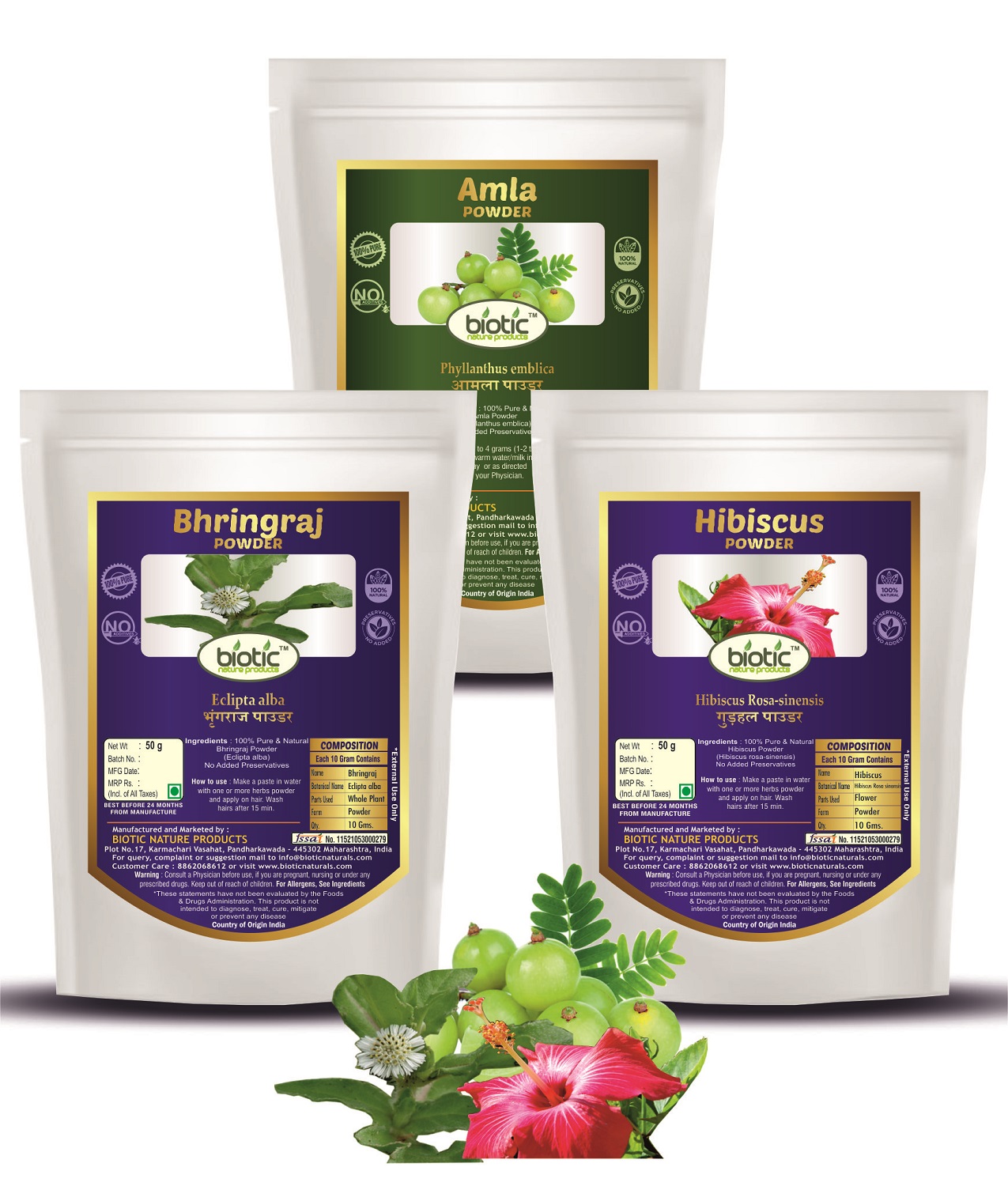 We the “Biotic Nature Products” are Online Supplier of Natural and Herbal Powders and also Raw Herbs. We believe in dealing quality products. In a short span time, we have over 3 lacs satisfied customers all over India. We supply good quality produce that too at very competitive rates to retail customers. Hence, now a days, we are considered at first few top-most suppliers on e-commerce sites. Biotic Amla, Bhringraj and Hibiscus Powder – 150gm (50g Each)