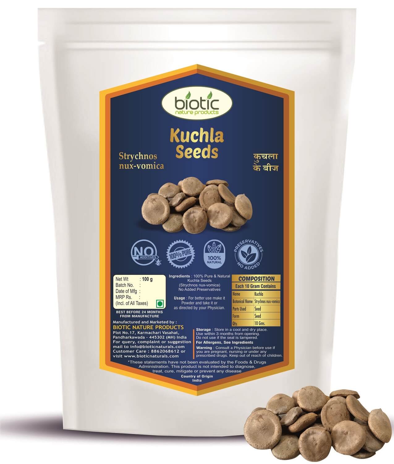 We the “Biotic Nature Products” are Online Supplier of Natural and Herbal Powders and also Raw Herbs. We believe in dealing quality products. In a short span time, we have over 3 lacs satisfied customers all over India. We supply good quality produce that too at very competitive rates to retail customers. Hence, now a days, we are considered at first few top-most suppliers on e-commerce sites. Biotic Kuchla Seeds – Strychnos Nux vomica Seed – Kuchla beej – Kuchila Seeds