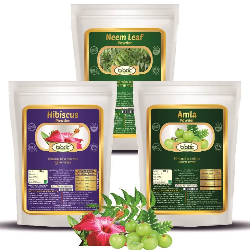 Neem Leaf, Amla and Hibiscus Powder – 300 gms (100 gms each)