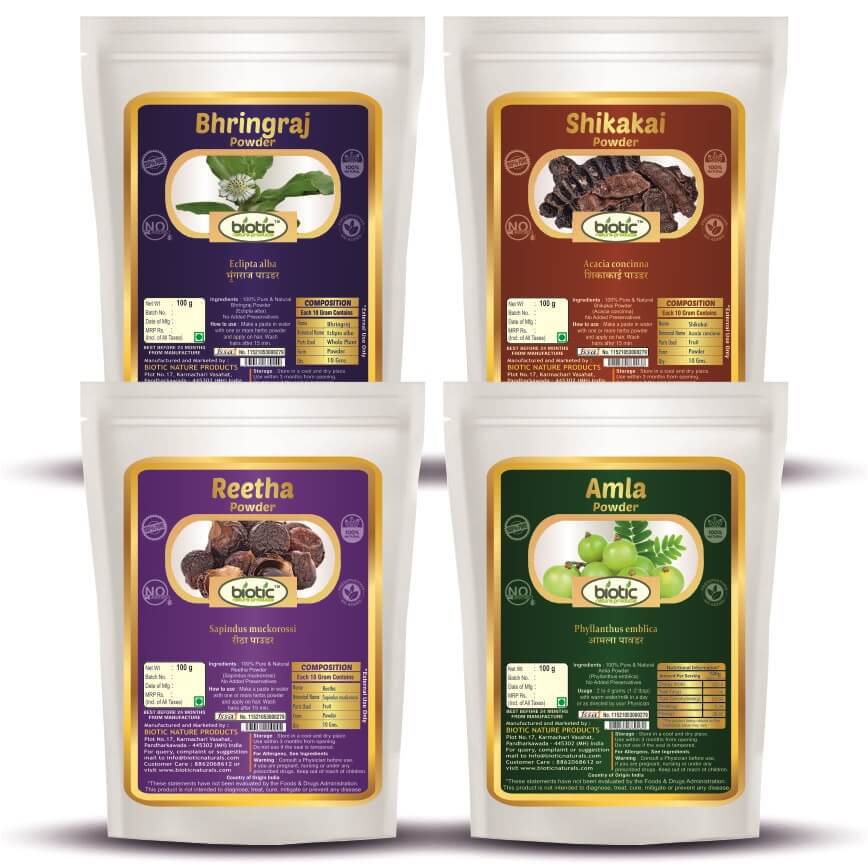 Shikakai, Reetha, Bhringraj and Amla Powder – 400 gms (100 gms each)