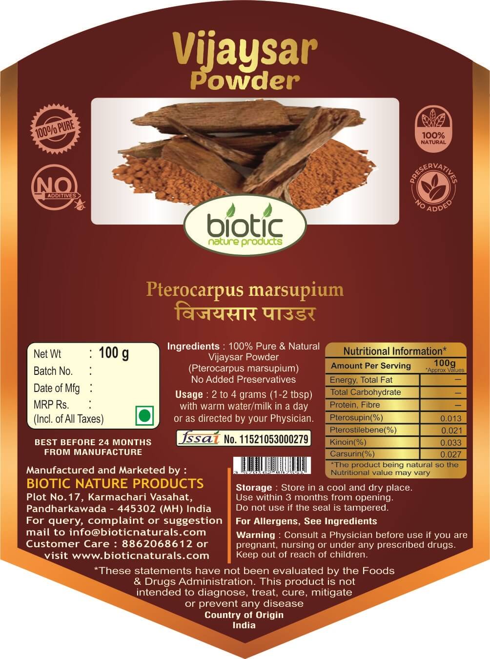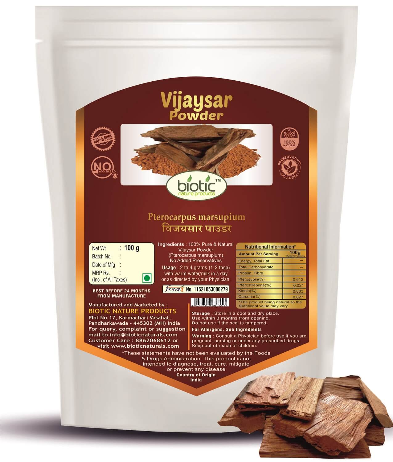 Other Names : Vijaysar Powder ( विजयसार चूर्ण ), Pterocarpus marsupium, Indian Kino Tree , Asana, Vijaysar, विजयसार, Bija, Venagi, Yegi, Beejaka, Bibala, Biyo,